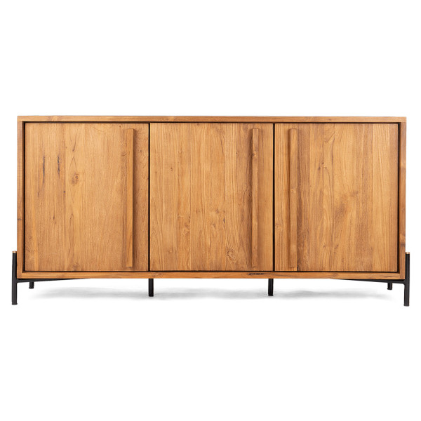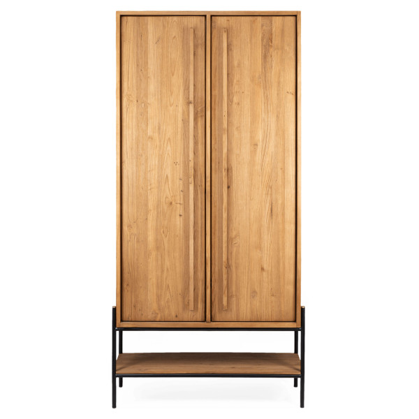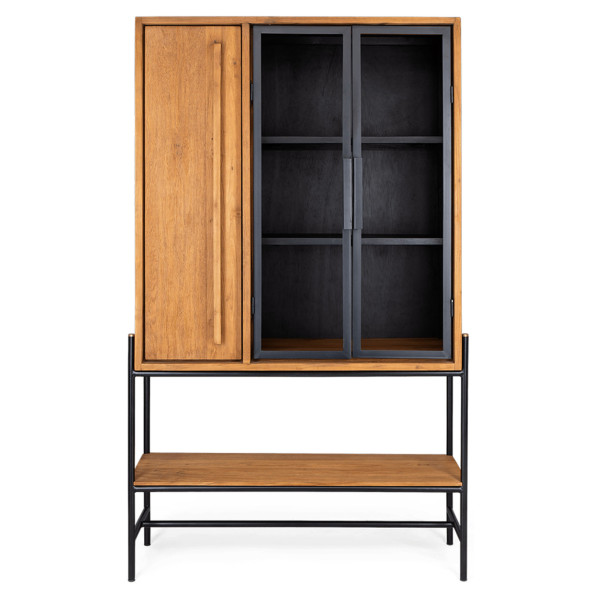 Dieser Outline-Schrank mit Schublade ist ein Meisterwerk der Handwerkskunst. Mit seiner klaren Ästhetik, seinen klaren Linien und seinen beeindruckenden Holzarbeiten verkörpert dieser vielseitige offene Schrank die Reinheit der Handwerkskunst. Die Regale und Schubladen bestehen aus einer Kombination aus wiedergewonnenem Teakholz und Eisen und sorgen für ein schlichtes, reichhaltiges und modernes Aussehen, das nie aus der Mode kommt. Mit Abmessungen von 94 x 42,5 x 195 cm eignet sich dieses Möbelstück perfekt, um Ihre Lieblingsstücke aufzubewahren und Ihrem Zuhause einen Hauch von Raffinesse