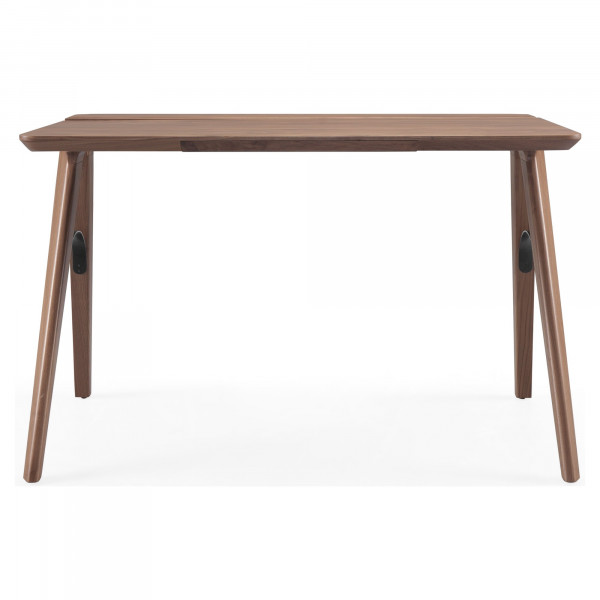 Der Schreibtisch Bridge bietet ein minimalistisches Design aus massivem Nussbaumholz mit abgerundeten Ecken und Metallbögen zwischen den Beinen. Dieser von Christophe De Sousa entworfene Schreibtisch misst 120x70x74 cm.