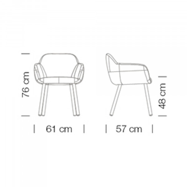 Der Sessel Myra 657 ist auf dem Sitz und der Rückenlehne gepolstert. Seine Stoffpolsterung ist nach einer großen Auswahl anpassbar. Sein Rahmen besteht aus 4 runden Holzbeinen. Dieser Sessel misst 61x57x76 cm bei einer Sitzhöhe von 48 cm.