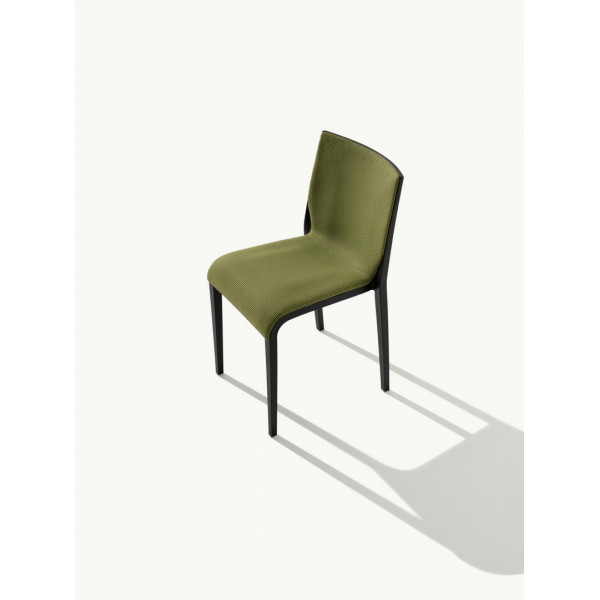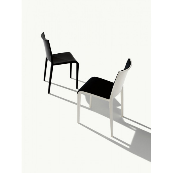 Monoblock-Stuhl aus Polypropylen mit gepolsterter Sitzfläche, Spritzguss mit Luftformtechnologie.