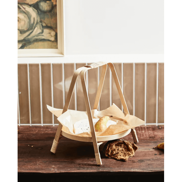 Mit seinem modernen Stil und seinem klassischen Design eignet sich dieses dekorative Pula-Tablett perfekt zum Servieren von Brot oder Frühstück. Es ist handgefertigt aus Bambus. Dieses Tablett hat einen Griff, sodass es leicht bewegt werden kann. Es misst 35x31x37 cm.