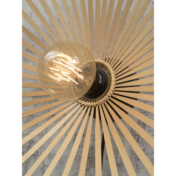 Die asymmetrische Bromo-Wandleuchte kombiniert Bambus und Eisen und verleiht einer Inneneinrichtung einen Hauch von Originalität und Eleganz. Diese Leuchte zeichnet sich durch eine Länge von 40 bis 60 cm, eine Höhe von 40 bis 60 cm und eine Grundgröße von 12 cm im Durchmesser und 2,5 cm dick aus. Das große Modell zeichnet sich durch einen Durchmesser von 60 cm und eine Höhe von 13 cm aus. Was das kleine Modell betrifft, zeichnet es sich durch 40 cm im Durchmesser und 11 cm in der Höhe aus. Diese Wandleuchte hat einen E27-Sockel (Glühbirne nicht im Lieferumfang enthalten).