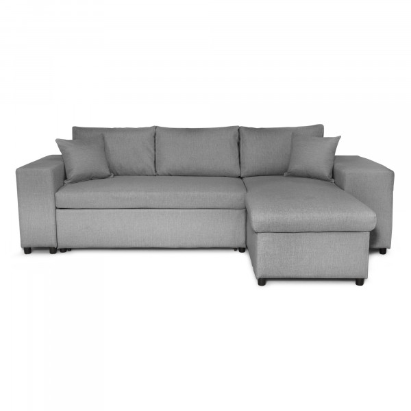 En konvertibel stof hjørnesofa med skuffer, 2 puder og 2 puffer udstyret med elegance for maksimal komfort. Denne lange Maria Pac sofa har en relativt stor opbevaringsboks for at forenkle opbevaring. Det forvandles til en seng til 2 personer på et øjeblik. Materialer af høj kvalitet som træ og hårdt metal giver det møbler af høj kvalitet. Denne sofa måler 254x148x81 cm, med en seng på 140x190 cm. Sædet har en højde på 44 cm og en densitet på 27 km/m³. Komfort leveres af zig-zag fjedre.