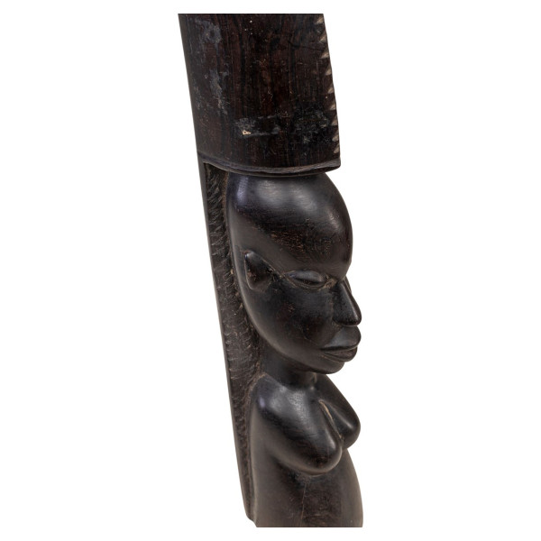 Denne ibenholt træskulptur repræsenterer en Maasai-kvinde. Den er udskåret af et enkelt stykke træ og måler 10x5x40 cm. Skulpturen stammer fra det 20. århundrede og stammer fra Kenya. Denne skulptur er et vigtigt objekt for Maasai-kulturen. Det repræsenterer skønheden, styrke, og modstandsdygtighed hos Maasai-kvinder. Det er også et symbol på velstand og lykke.