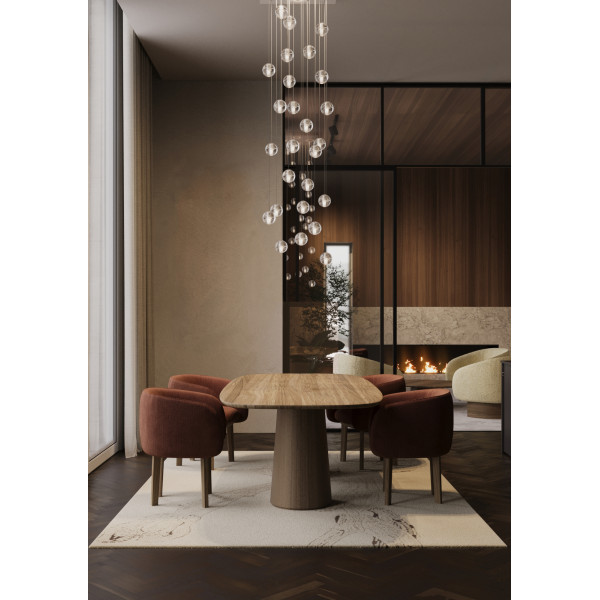Nido lænestolen er lavet af en ramme i massivt valnød træ og et sæde og ryg lavet af høj kvalitet stof. Dens generøse polstring giver komfort. Christian Haas-designet ønskede at give et elegant og elegant look med en buet form understøttet af lange armlæn. Dette klassiske og moderne møbel fra Wewood mærket måler 68x59x74,5 cm. Sædet har en højde på 49,2 cm.