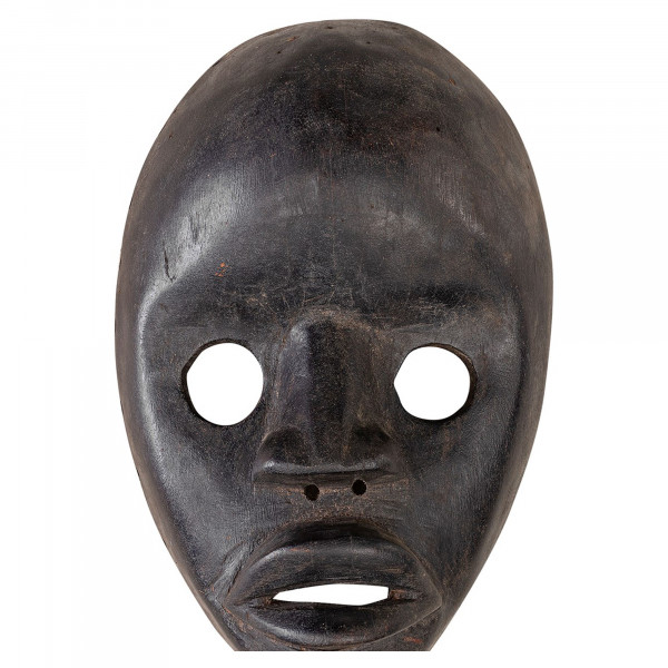Dennemaske blev lavet i Elfenbenskysten i det 20. århundrede. Dan AAA816 masken er helt udskåret i træ med stof dekoreret med raffia og cowrie klokker. Denne unikke dekorative genstand fra Versmissen vil bringe til et rum en gennemsyret af etnisk historie. Denne maske blev brugt til at beskytte den unge indviede fra destruktive eller onde kræfter. Den måler 19x21x28 cm.