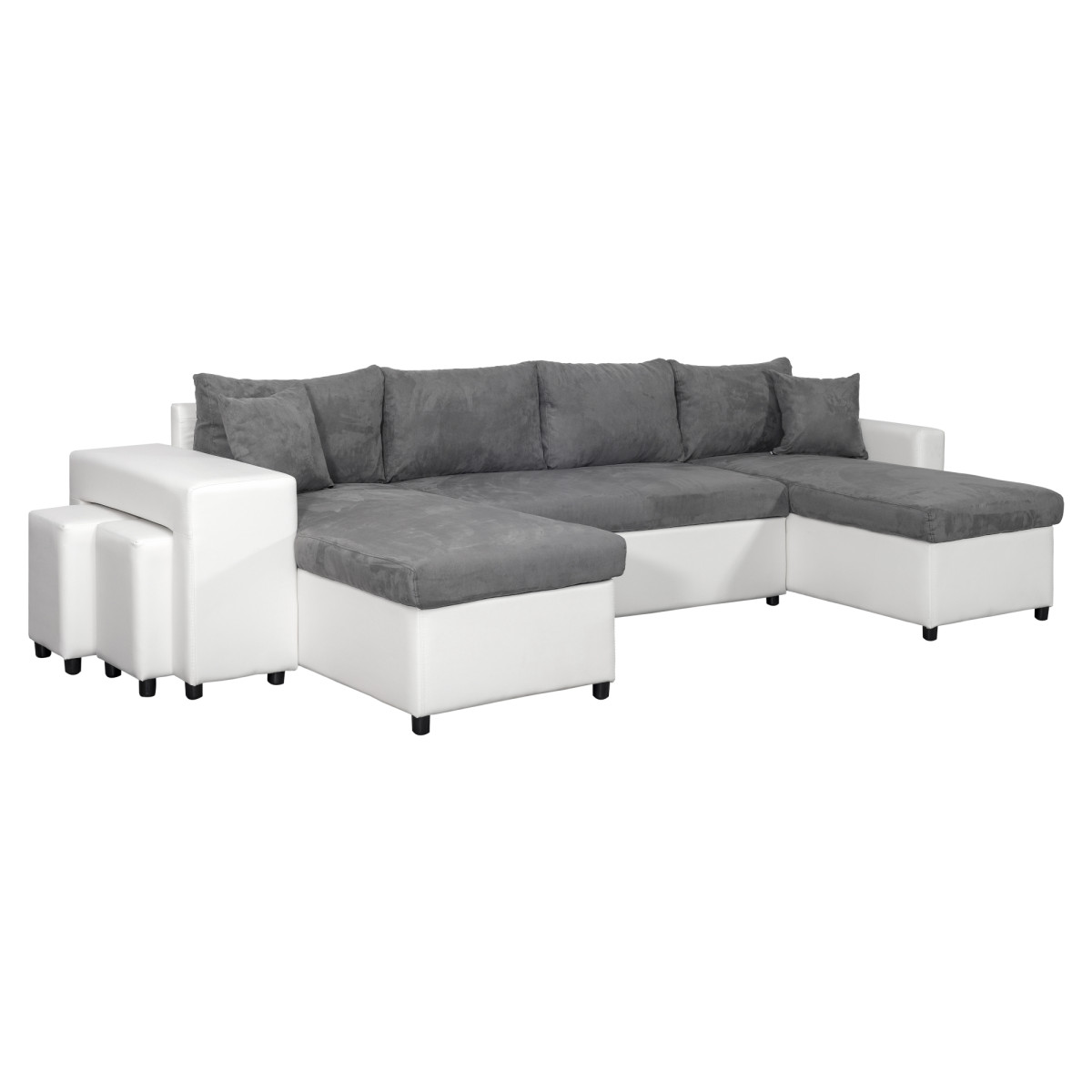 Denne Maria U Plus venstre panoramisk sovesofa er perfekt til at fylde interiører med sit moderne og elegante look. Denne sofa har mange praktiske og optimistiske funktioner såsom en sovesofa, en ekstra seng til 2 personer og er udstyret med 2 opbevaringsskuffer. For et blødt og luksuriøst touch er dette møbel sammensat af massivt træ, metal og mikrofiber. For mere komfort ledsages denne sorte og grå panoramasofa af matchende puder samt 2 kasser og 2 puffer. Et rummeligt og skumpolstring sæt med dimensioner på 148x305x71 cm med en sædehøjde på 44 cm.