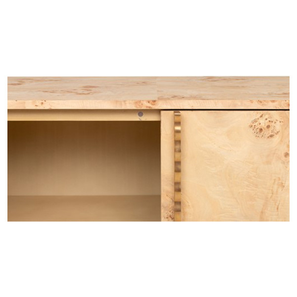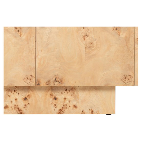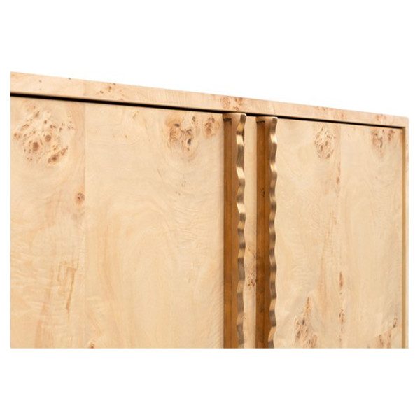 Baka-skænken er et møbel med enestående elegance, der kendetegnes ved dets harmoniske dimensioner på 93x45x80 cm. Det er omhyggeligt udformet af Mappa-finer og legemliggør både træets naturlige skønhed og moderne design. Møblernes naturlige finish giver det et autentisk og organisk look, der passer perfekt ind i forskellige interiørdesignkonfigurationer. Dens diskrete håndtag tilføjer et strejf af forfining, mens de rummelige dimensioner giver generøs opbevaringsplads til vigtige genstande. Baka-skænken er meget mere end bare en opbevaringsenhed, det er et vigtigt stykke indretning, og benene er justerbare. Mappa-finer varierer fra lys beige til guld/lyserøde toner med brune eller rødlige lommer. Som følge heraf kan hvert element variere i farve fra et element til et andet.