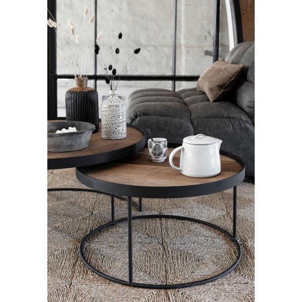 Mercurius er et sæt med 2 sofaborde. Bordene har en rund form og er lavet af træ med en ramme af jern. De måler Ø60x35 cm og Ø80x40 cm og fås i to farver.