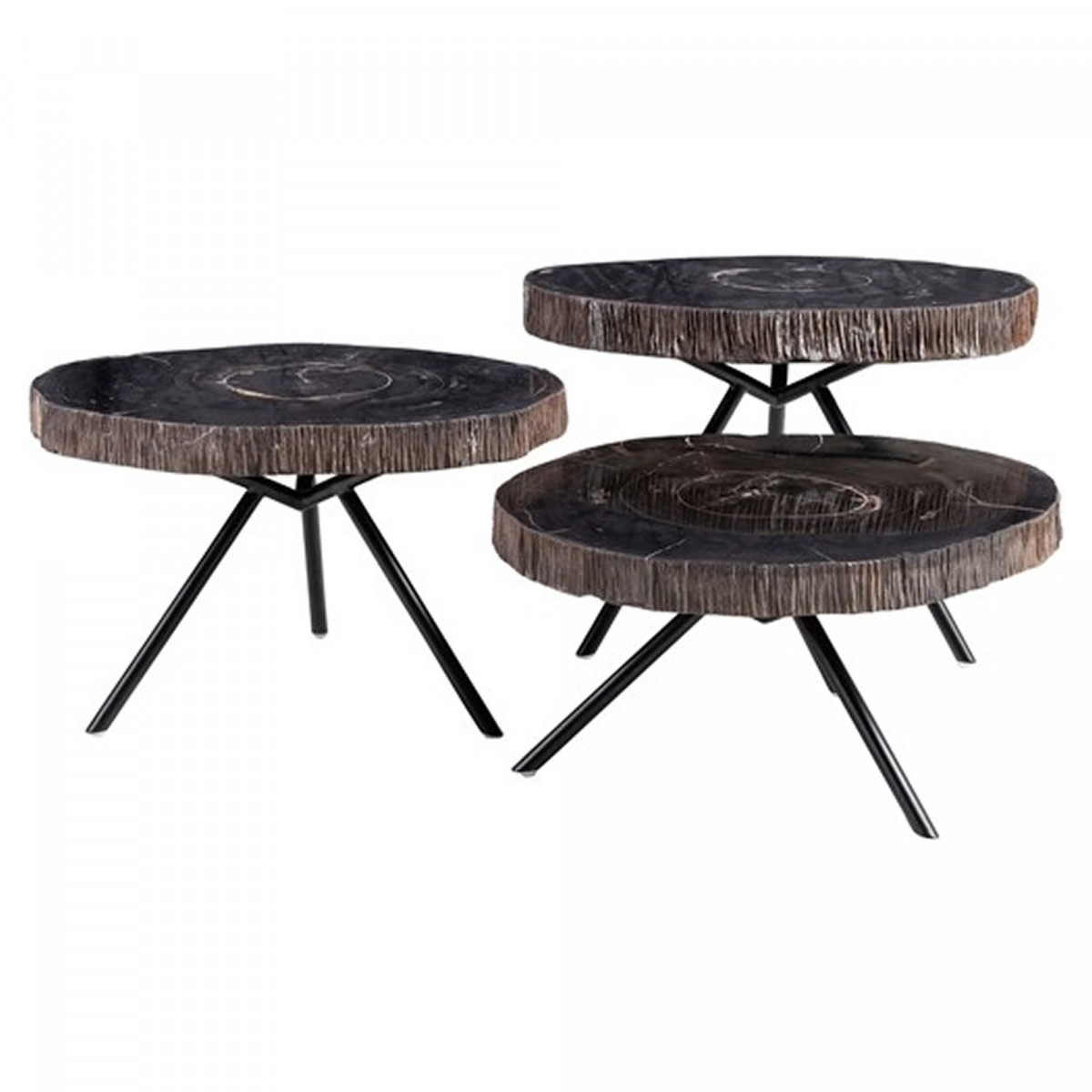Disse 3 sofaborde i forskellige højder er ideelle til at forbedre interiøret. Med sin vintage og naturlige design. Den er designet i forstenet træ og dets jernben.