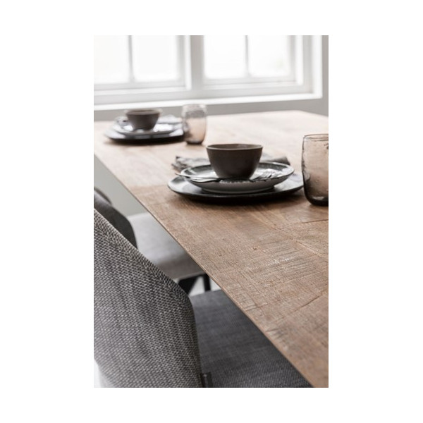 Den rektangulære Metropole spisebord er lavet med genbrugt teak træ og indeholder koniske ben i form af en boomerang. Det er kendetegnet ved tre forskellige dimensioner. Dens naturlige farve og design vil give spisestuen et smukt udseende og elegance.