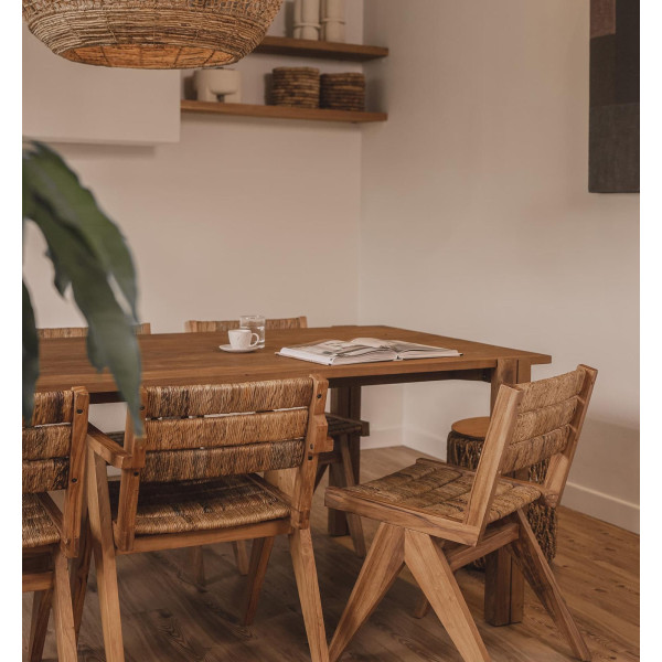 Hopper spisebordet er et produkt, der er både elegant og moderne i sit design. Fås i 4 størrelser, det tilbyder høj kapacitet og praktisk brug takket være sin robuste og holdbare traditionelle konstruktion. Lavet af genvundet teak, dette elegante bord har en solid teaktop og vendte solide teakben også. Dens rene og smarte design tilpasser sig perfekt til ethvert rum.