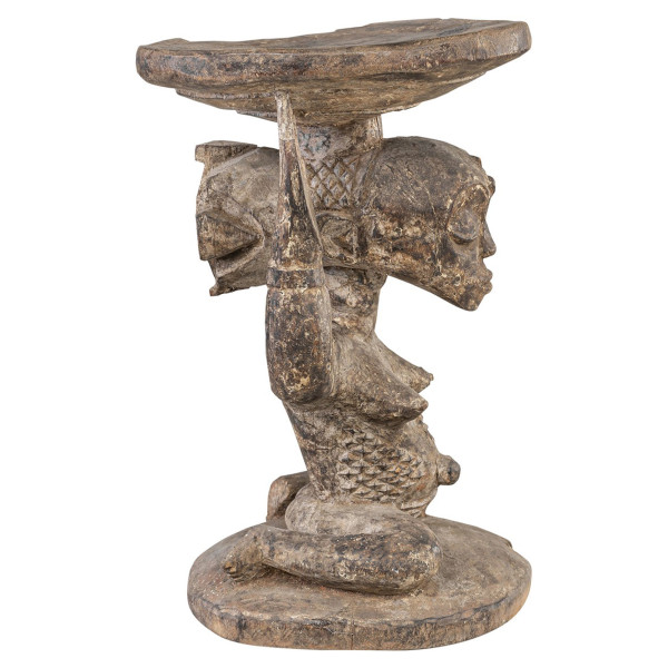 De kongelige Luba-stole, selvom de er funktionelt designet, tjener aldrig som sæder, men snarere som hellige dekorationer bevaret i kongelige paladser. Deres design kan være abstrakt eller figurativt, med kvindelige karyatider, der udtrykker Luba-visionen om den kvindelige krop som åndelig beskyttelse, der understøtter guddommelig kongelige. Dette unikke stykke fra det 20. århundrede, oprindeligt fra DR Congo og Luba-stammen, måler 23x