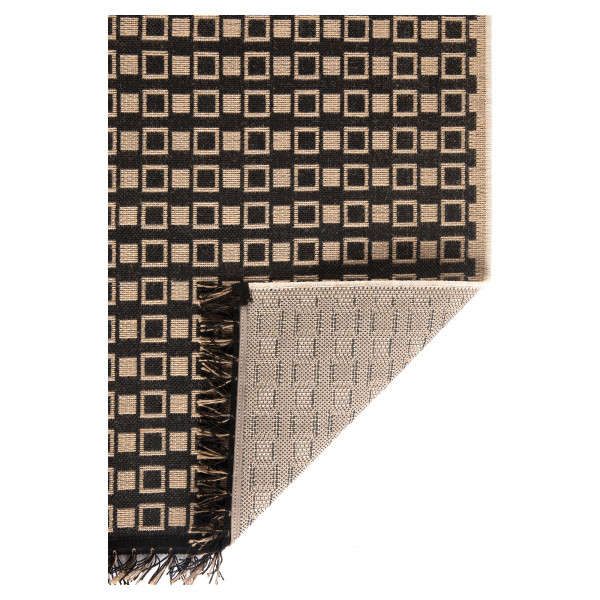 Her er tæppet Pablo, fremstillet i boheme-chic stil, som er let at vedligeholde takket være dets materiale i 100 % polypropylen og den høje slidstyrke, certificeret af Oeko-Tex. I en naturlig farve fås det i størrelsen 160x230 cm med en super trendy grafisk stil takket være dets enkle mønster. Dette tæppe er iøjnefaldende med sine frynser i kanterne, som fremhæver indretningen.