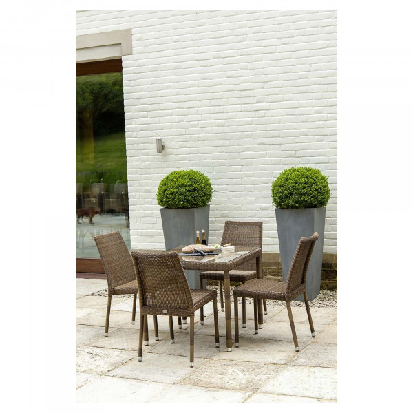 SeeSan Marino tabelis Alexander Rose on ruudukujuline klaasist top. See tabel on kootud käsitsi viro sünteetilisest kiust ja struktureeritud alumiiniumist. Mõõtmega 80x80x74 cm pakub see mööbliese söögi ajal või muid tegevusi. Selle ainulaadne disain ja eksootiline stiil suurendavad elutuba.