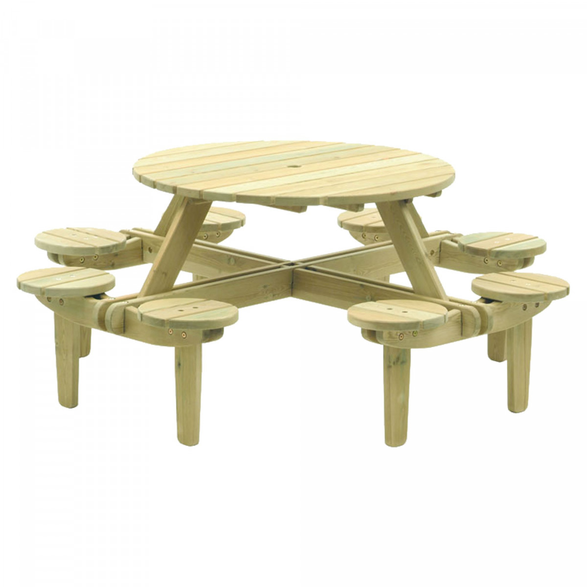 See Gleneagles piknikulaud Pin FSC vahemikus on ümar kuju. See võimaldab sööki nautida meeldivalt vahel 8 külalist. Selle aia- või sisemööbli valmistamiseks kasutatav puit on FSC mänd. See mööbel on ainulaadne igas toas mõõtmetega Ø200x75 cm. Ja päikesepaistelistel päevadel on päikesevari võimalik paigaldada laua keskele.