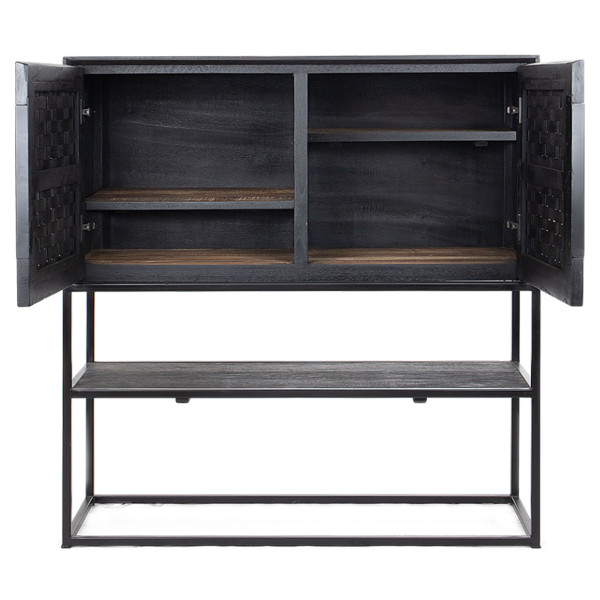 Karma puhvetkapp on elegantne ja ökoloogiline mööbliese, mis on valmistatud käsitsi taastatud puidust. Sellel on kaks käsitsi kootud rotangist ust, mida töödeldakse keskkonnasõbraliku musta mattviimistlusega ja vastupidava rauast raamiga. Avatud riiulid sobivad ideaalselt teie lemmik aarde kuvamiseks, ülejäänud saab kergesti hoida hästi struktureeritud uste taga. Selle mõõtmetega 105x40x110 cm on see mööbliese ideaalne, et lisada oma magamistoas või elutoas stiili ja funktsionaalsust.