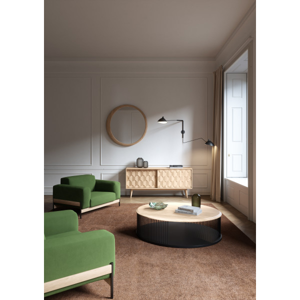 Bowie tugitool on modulaarne, pehme ja tasakaalustatud. See on loodud olema meeldiv, mugav ja sobima nii elutuppa kui ka hotelli fuajeesse. Lihtsa pilkupüüdva detailiga mängib tugitooli struktuur metalli saleda välimuse ja pähklipuu tugevuse vahel. Selle mõõtmed on 113x90x75 cm. Bowie sari on disainer Gonçalo Campose looming.