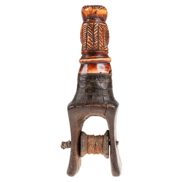 Skulptuur kujutab endast 20. sajandi keskpaigast pärit Lega hõimust Kongo Demokraatlikust Vabariigist pärit Lega Heddle Pulley mudelit. See ainulaadne objekt, mille mõõtmed on 5,5x7x23 cm, on valmistatud traadielementidega puidust. Sellel on vertikaalne kuju, mille ülaosas on skulptuuritud kuju, mida iseloomustab tähelepanu detailidele ja iseloomulik hõimuesteetika. Rihmarattat kasutati kudumisel, kus see juhtis kangastekarja niite, ühendades seeläbi funktsionaalsuse ja