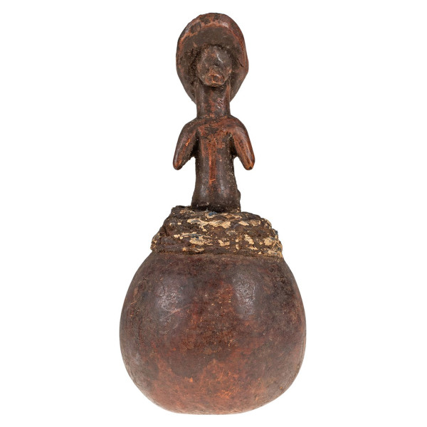 Kalabašid, mida sageli kasutatakse pühade anumatena, majapidavad ravimeid ja õlisid erinevate inimeste kätes. Peeneks nikerdatud puidust korkidega varustatud miniatuursed pead jäljendavad suuremaid skulptuure ja maske. See 20. sajandi kõrvitsa- ja sulgepuutükk, mille suurus on 14x12,5x27 cm, mis pärineb Kongo Demokraatlikust Vabariigist Louba hõimust, peegeldab piirkonna kultuurilist ja vaimset rikkust.
