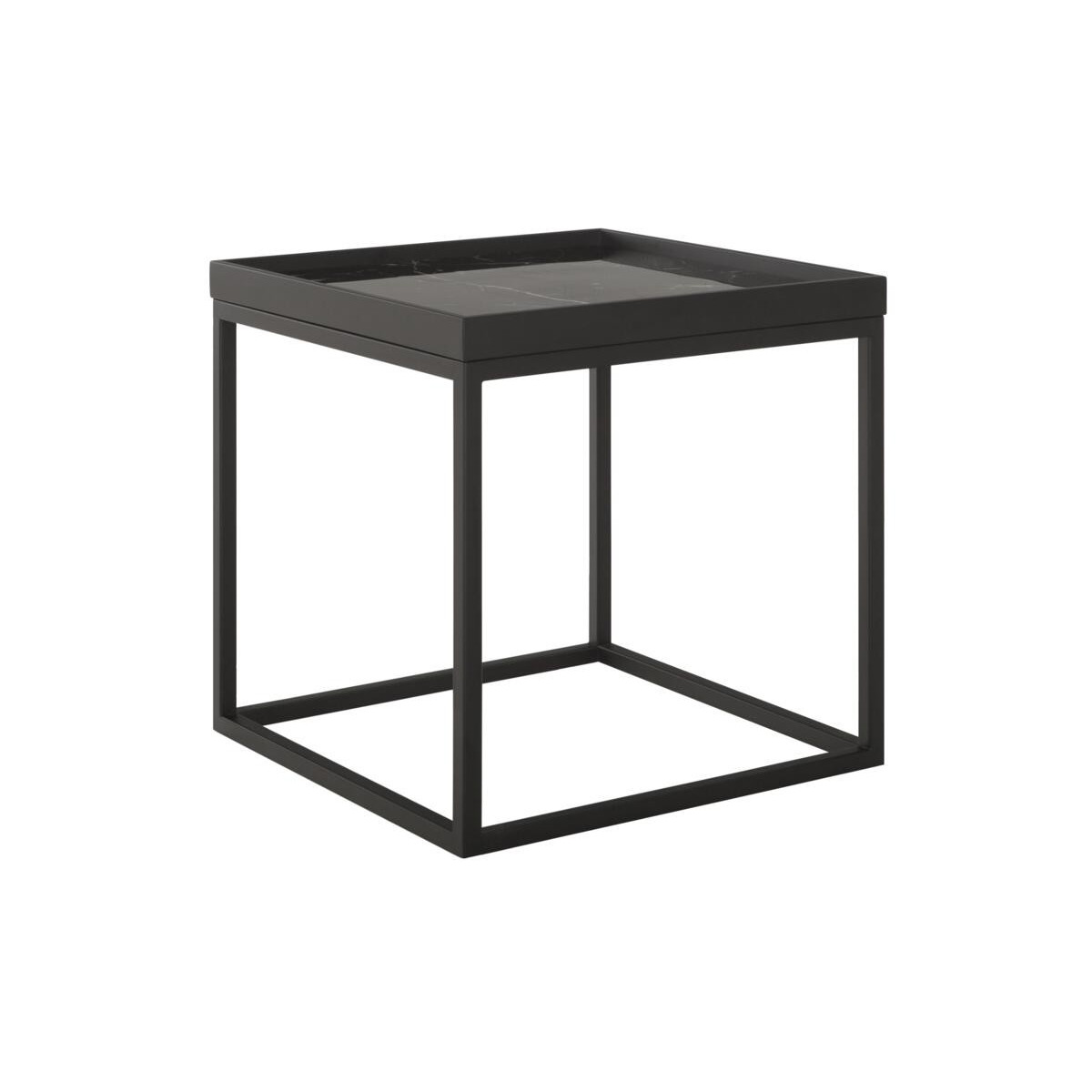 MUST Living Cube diivanilaud on saadaval kahes suuruses. Laual on musta marmorklaasist pealispind.