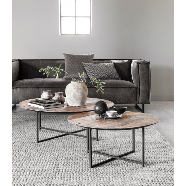 Cosmo diivanilaud on valmistatud naturaalsest taaskasutatud tiikpuust lauaplaadist ja mustast rauast struktuurist. Selle šikk ja sõbralik välimus toob sisekujundusse pehmust. Selle läbimõõt on 75 cm ja kõrgus 35 cm.
