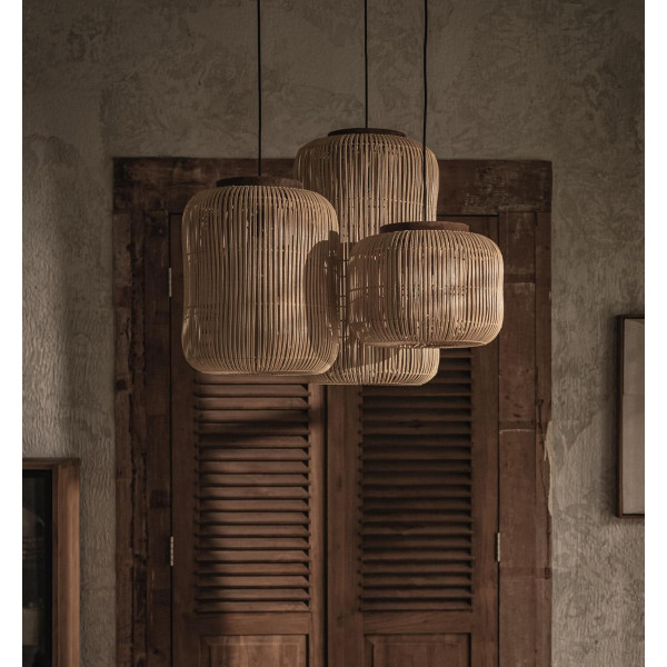 Barrel ripats tuli on tõeline vara oma kodu kujundusest. Selle suurepärase avatud struktuuriga on see lühter tõeline dekoratiivne element. Valmistatud täielikult käsitsi kvaliteetsest rotangist, see on teak top. Barrel ripats tuli annab ilus allikas loomulikku valgust toas ja on tõeline pilkupüüdja. Pole tähtis, kus te seda paigutate, toob see teie koju originaalsuse. Saadaval mitmes suuruses ja värvitoonis.