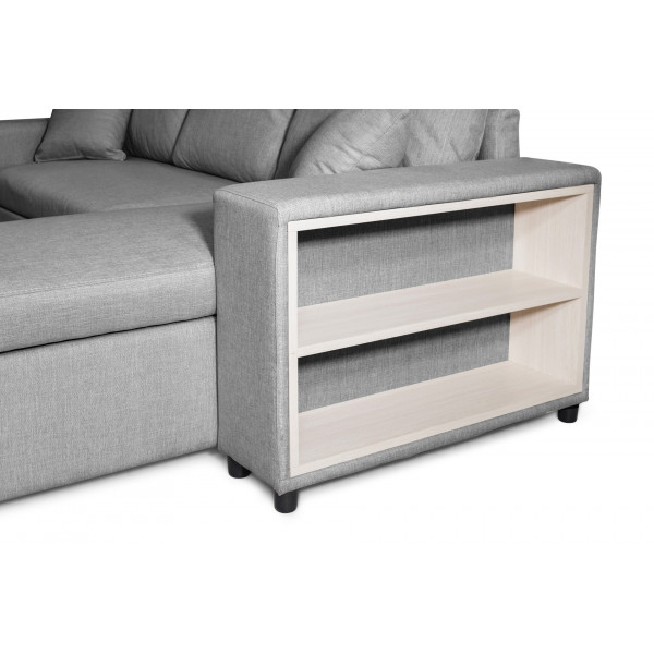 Kabriolett kangast nurgadiivan sahtlitega, 2 padjad ja 2 poufs varustatud elegantsi maksimaalse mugavuse. Sellel pikal Maria Pac diivanil on suhteliselt suur hoiukast, et lihtsustada ladustamist. See muutub voodisse 2 inimesele hetkega. Kvaliteetsed materjalid nagu puit ja kõva metall annavad sellele tippkvaliteediga mööbli. Selle diivani pikkus on 254x148x81 cm, voodi pikkus 140x190 cm. Istme kõrgus on 44 cm ja tihedus 27 km/m³. Mugavust pakuvad siksakvedrud.