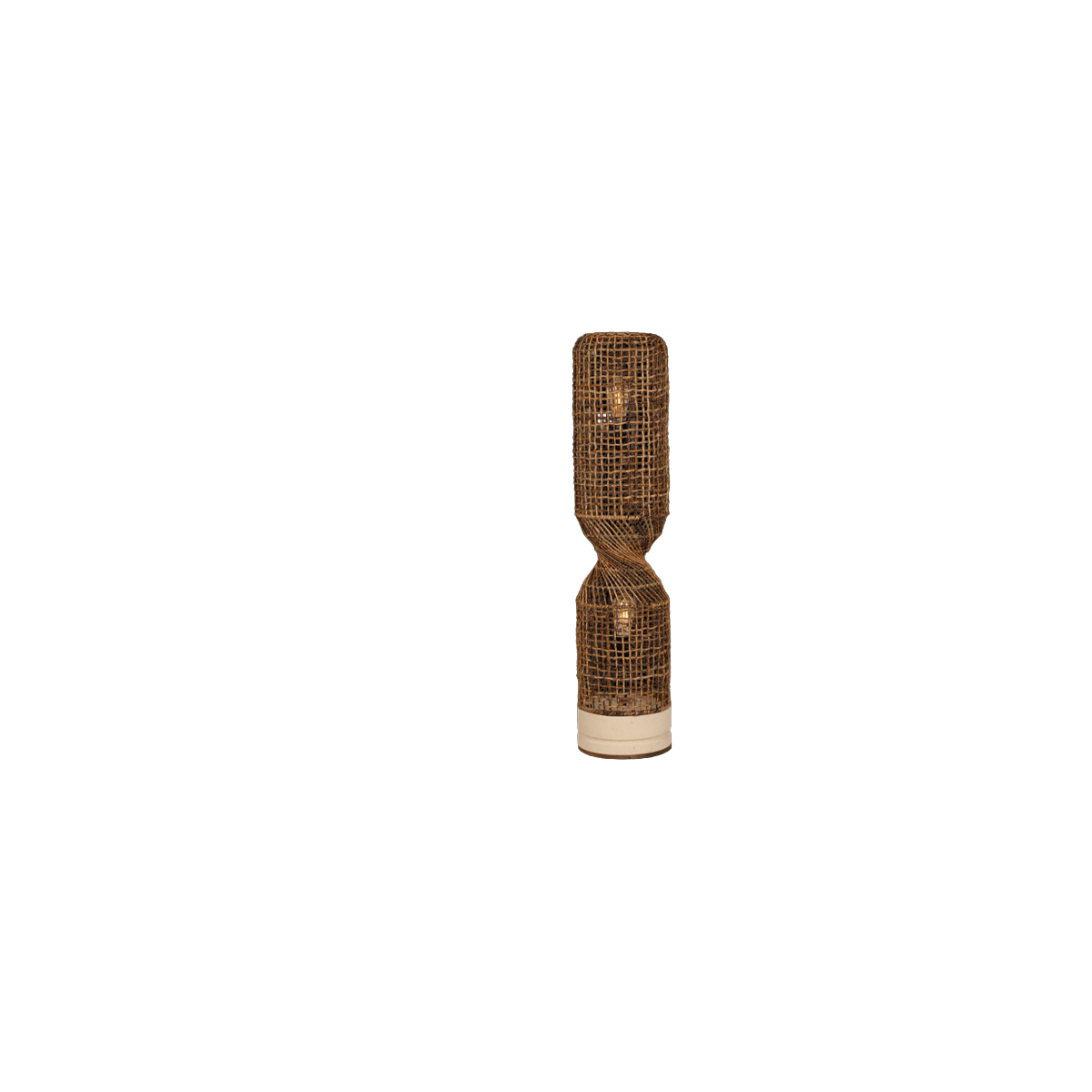 Twister põrandalamp on eraldiseisev lamp, mis on kujundatud „võrk” disainiga, kasutades metallraami ja nutikalt ümbritsetud abaca koorega, et luua maalähedane ja meeldiv kootud välimus. Lambid keeratakse ja keeratakse, paljastades elegantsed keerduvad detailid ja toetuvad vastupidavale käsitsi pööratud liivakivist alusele, tagades nii stabiilsuse kui ka turvalisuse.