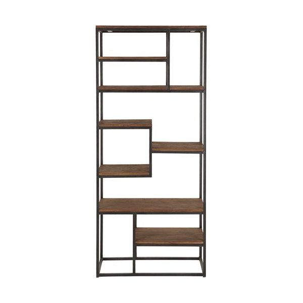 Raamatukogu taaskasutatud tiigipuust musta metallraamiga