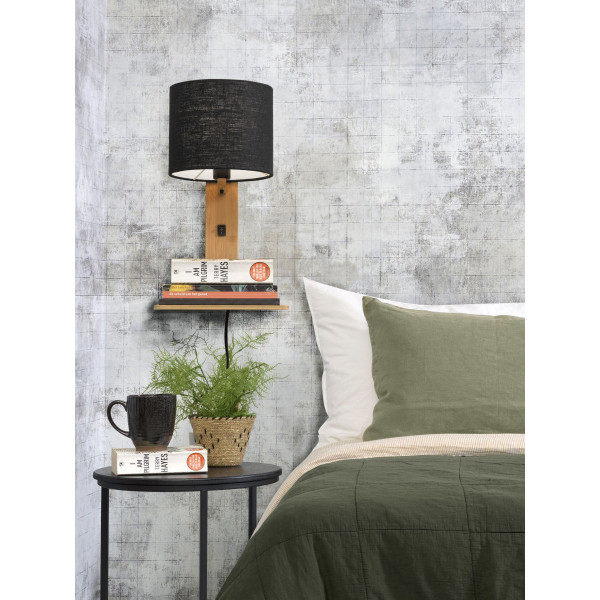 Andide seinavalgusti naturaalsest bambusest ja linasest koos riiuliga