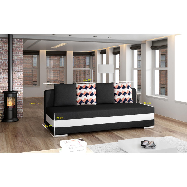 See Calia püstine diivan on valmistatud kaasaegse interjööri riietamiseks lihtsas ja minimalistlikus disainilahenduses. See on kaetud tippkvaliteediga kangad pakkuda kõrge tugevuse aastaid. Selle plastist ja kroomitud terasest jalad parandavad selle diivani üldist välimust. Sellel on täiendavad padjad, et lisada dekoratiivsele atmosfäärile veelgi rohkem iseloomu. 195x91x83 cm formaadis 40 cm istmepadjaga on päeva jooksul palju ruumi lõõgastumiseks ja seda saab muuta voodiks, et magada öösel 140x195 cm magamisalal. Sellel Calia diivanil on saadaval mõned kattekangad.