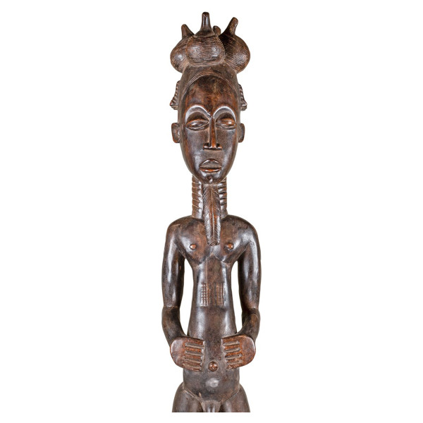 See looduslikust puidust Baoulé skulptuur, 17x16x78 cm, kehastab vaimset abikaasat Blolo biani. Ennustamisel hädavajalik see toimib sillana blologa, esivanemate vaimse maailmaga. See sümboliseerib intiimset ja lahutamatut suhet elava ja vaimse, valitseva inimeksistentsi Côte d'Ivoire'i Baoulé seas. Teos on ainulaadne, tunnistab selle rahva vaimsust, kunsti ja sügavaid uskumusi. See skulptuur pärineb 20. sajandi keskpaigast.