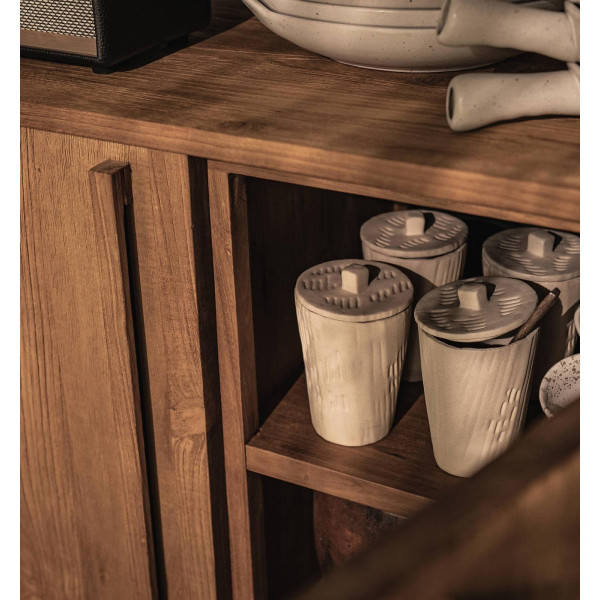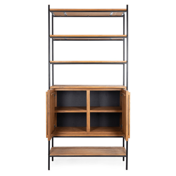 Este armario Outline de dos puertas es perfecto con su estética sencilla, sus líneas limpias y su impresionante carpintería. Este armario semiabierto de la colección Outline encarna la artesanía en estado puro. Hecho de madera de teca y hierro recuperados, el armario tiene un aspecto simple, pero rico y moderno que nunca pasa de moda. Detrás de las puertas hay 4 estantes para objetos que no son adecuados para exhibir. Tiene unas dimensiones de 94x42,5x195 cm.