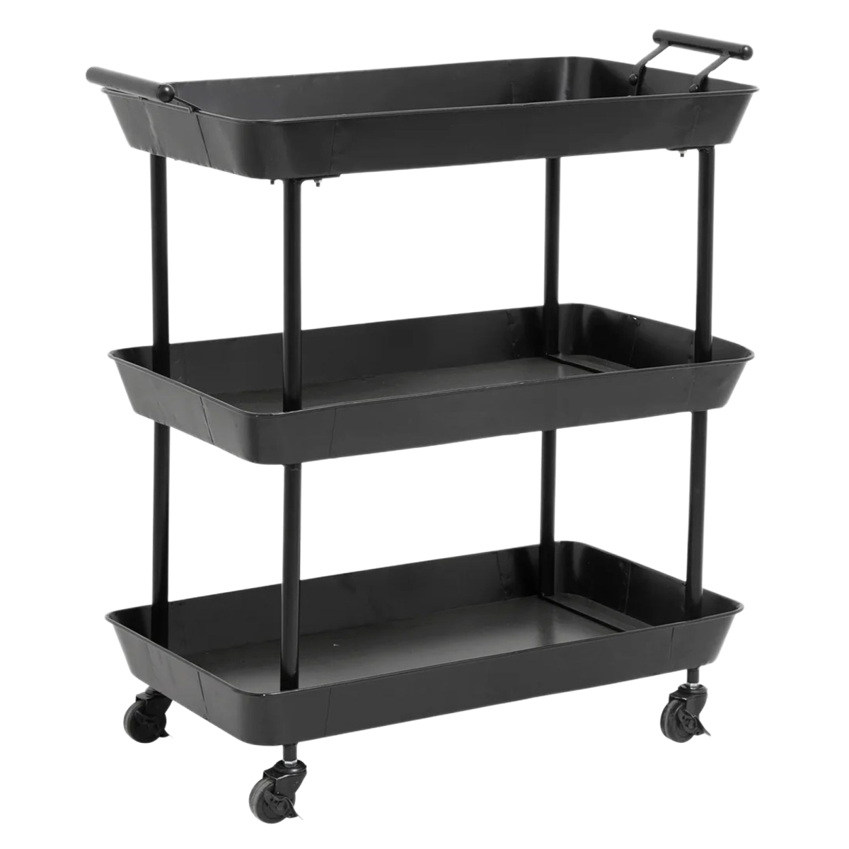 Para facilitar el transporte y evitar ir y venir, este carro con ruedas es una buena idea. Este carrito sirve tanto de almacenamiento como de decoración en un interior. Está fabricado íntegramente en hierro negro con unas dimensiones de 41x66x78 cm. Este bonito carrito también es ideal para guardar flores u objetos de decoración.