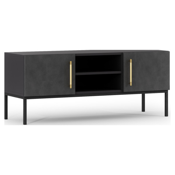 El estante de pared Lanzzi es un mueble estético y funcional que se puede utilizar en una variedad de habitaciones. Está hecho de un marco de MDF negro y compartimentos de madera rústicos que crean un aspecto agradable. Está equipado con dos puertas con cerradura que se abren a presión y tres estantes, incluido un estante para exhibición y decoración, un estante adicional sobre los cajones y un nicho para objetos pequeños. Con sus dimensiones de 25x120x20 cm, ofrece suficiente espacio de almacenamiento para documentos y otros objetos personales. Es perfecto para guardar y exhibir objetos decorativos y se puede combinar con otros estantes de la misma colección para lograr un efecto más espectacular.