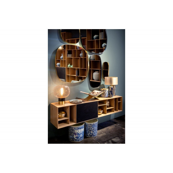 El espejo Dobbles es perfecto para aportar un aspecto elegante gracias a sus colores negro y dorado. El borde dorado cepillado está realizado a mano a partir de hojas de latón dobladas, por lo que pueden presentarse imperfecciones y la unión/soldadura siempre será visible. Este espejo añade un toque moderno y decorativo al interior. Con su forma de cuadrado redondeado, mide 50x50 cm y tiene un grosor de 3 cm.