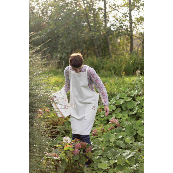 Esta agarradera Gardenia 2 en 1 está hecha de algodón reciclado, hilo teñido, compuesto por un 80% de algodón y un 20% de poliéster. Permite sacar los platos del horno de forma segura a la vez que aporta un toque de frescura primaveral a la cocina. El elegante estampado floral de esta agarradera también está presente en el paño de cocina y el delantal a juego de la misma colección. Sus dimensiones son de 20 x 20 cm y se ofrece
