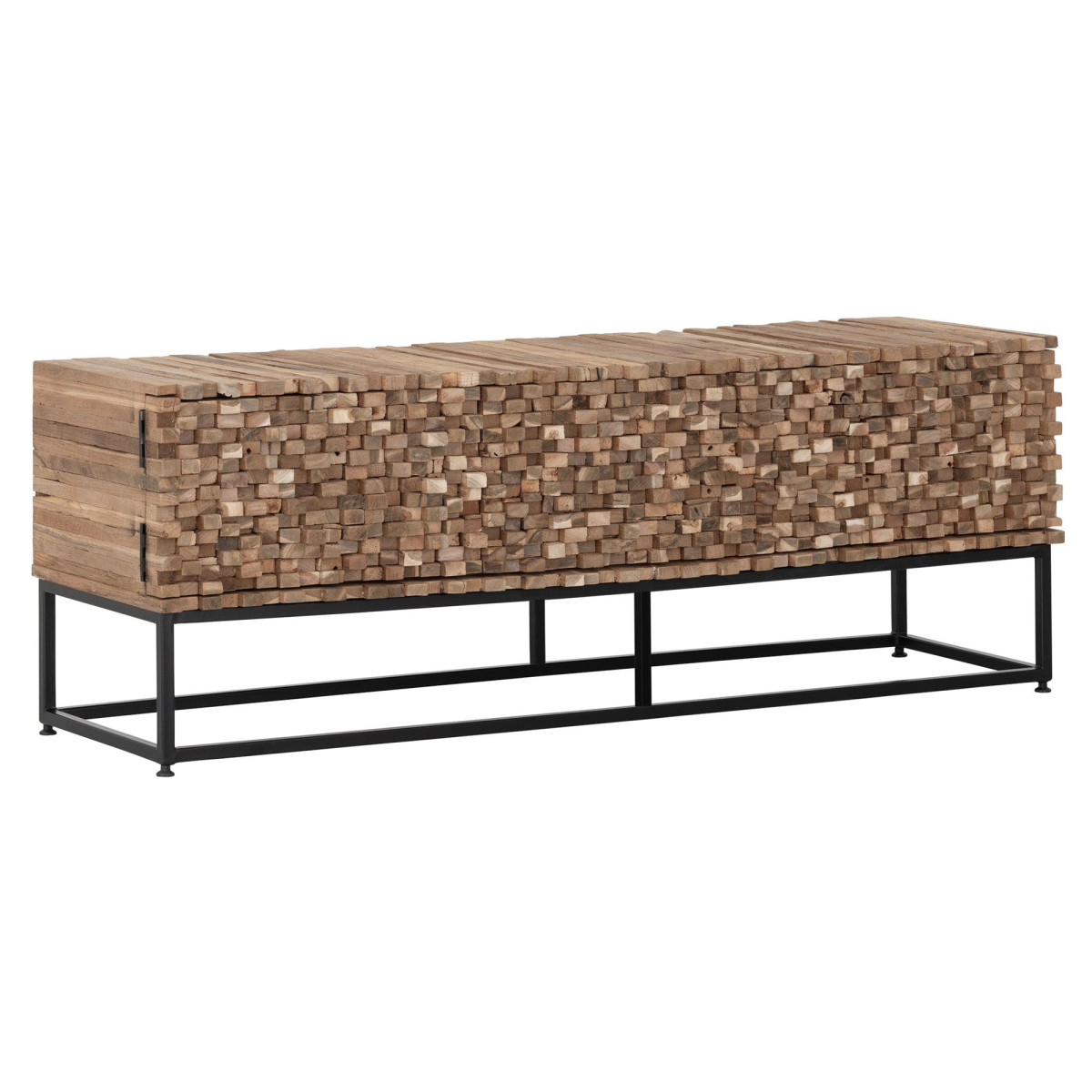 Este soporte para TV Sticks de diseño elegante tiene unas dimensiones de 50 x 145 x 40 cm y está finamente coloreado en un tono natural. Está fabricado meticulosamente en madera de teca, lo que le confiere una estética cálida y una gran robustez. Con un tamaño práctico y un estilo atemporal, este soporte de TV se adapta perfectamente a la sala de estar y ofrece funcionalidad y
