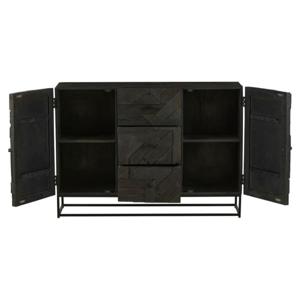 El aparador Villars es un mueble de almacenamiento elegante y contemporáneo propuesto por la marca Athezza. Está hecho de madera de mango negro y descansa sobre una base de hierro, lo que añade un toque de robustez a su diseño. El marco del aparador está decorado con motivos geométricos en relieve, lo que añade un aspecto excepcional y único al mueble. Cuando se abren las dos puertas de este aparador, hay un generoso estante que permite organizar y almacenar platos, botellas de vino y otros artículos. También ofrece tres prácticos cajones para organizar objetos pequeños. Sus dimensiones de 120x35,5x84,5 cm lo convierten en una opción adecuada
