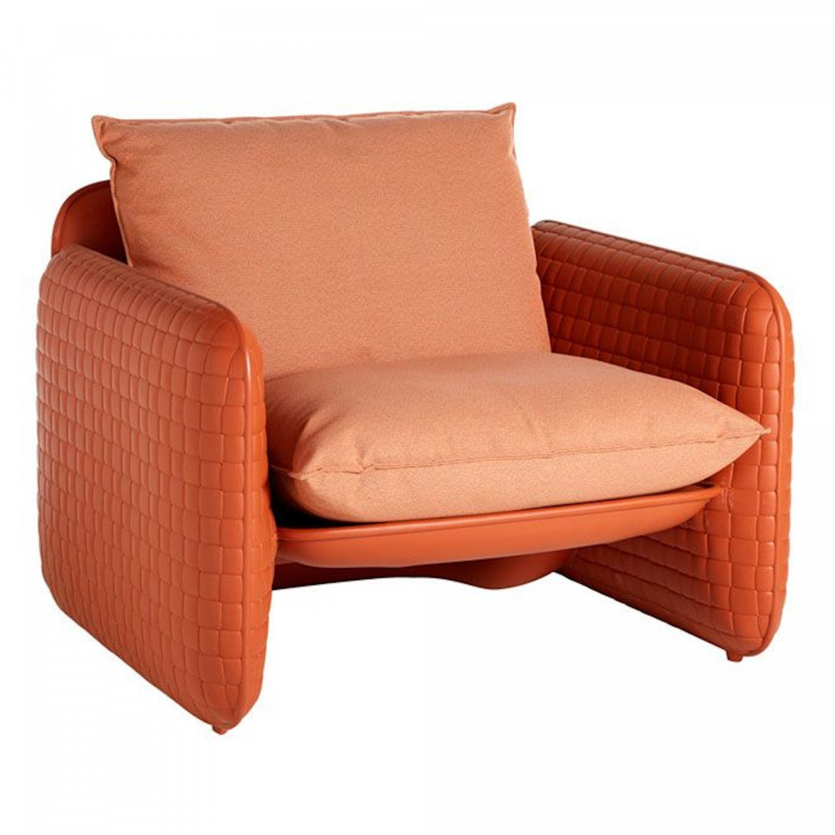 El sillón Mara se caracteriza por su textura de cuero trenzado. Este sillón lounge está diseñado por Lorenza Bozzoli. La textura única en polietileno se combina perfectamente con los cojines de tela impermeables. El conjunto es adecuado tanto para espacios exteriores como un jardín, como para espacios interiores. Mara es una colección compuesta por un sofá, un sillón y un puf.