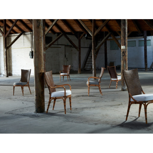El sillón de ratán Melody de la colección original Sika-Design es ideal para comer en casa. La ergonomía del asiento y el respaldo, incluidos el respaldo alto y los reposabrazos, hacen que los muebles sean cómodos. Este sillón está fabricado íntegramente con ratán natural de alta calidad. Este mueble está tejido por los mejores artesanos del mundo para crear muebles interiores únicos y de alta calidad. El sillón mide 60x54x97 cm.
