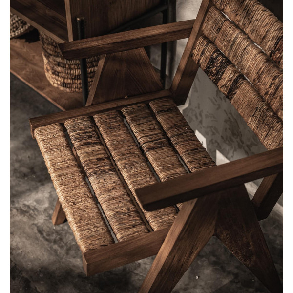 Caterpillar Brawny es una silla moderna que combina lo rústico y lo contemporáneo. Hecha de madera de teca recuperada y combinada con un respaldo y un asiento tejidos a mano con abacá, esta silla tiene un aspecto rústico pero clásico. Diseñada tradicionalmente por nuestros artesanos locales, la Brawny es una silla distintiva que resistirá el paso del tiempo. Mide 55x56x80,5