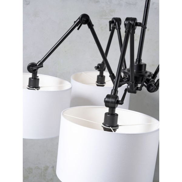 Con sus 5 pantallas de algodón, la lámpara colgante Amsterdam se adapta a todos los estilos de decoración interior. Es perfecta para iluminar las mesas del comedor. También puede integrarse perfectamente en cualquier habitación de la casa. Esta lámpara colgante dispone de 5 portalámparas E27 (bombillas no incluidas). Esta lámpara es