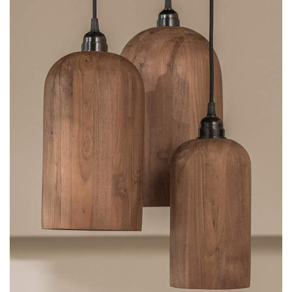 Esta suspensión Bullet está hecha de madera como una versión moderna de la pantalla suspendida, la pantalla de madera de teca natural recuperada es una opción ecológica. La pantalla Bullet de madera de teca se adapta a todos los tamaños de iluminación. Se puede colgar de forma individual o en combinaciones elegantes. Sencillo y elegante
