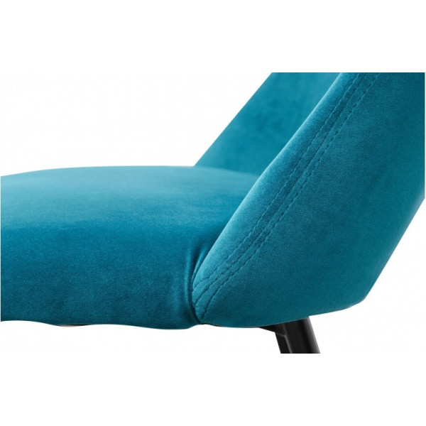 Con su color azul petróleo, su tejido de terciopelo (100 % PES) y sus patas de acero cubiertas con pintura epoxi negra y sus extremos de color cobre, el taburete de bar Andrew ofrece un acabado refinado y acogedor. Su altura de asiento es de 76 cm. El taburete mide 55x58x97 cm.