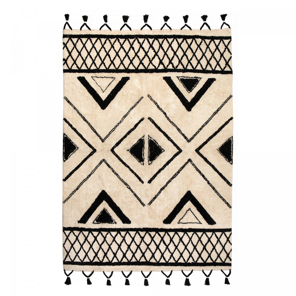La alfombra Sami se adapta perfectamente a cualquier tipo de interior. Esta alfombra 100% algodón ultrasuave y duradera presenta un elegante estampado étnico de estilo bohemio. Sus flecos le dan un aspecto único.