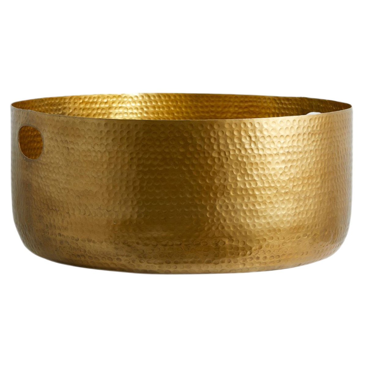La bandeja Laika de aluminio es ideal para guardar pequeños objetos en una habitación. Con su color dorado, presenta motivos martillados y dos asas abiertas en los laterales para facilitar su transporte. Esta bandeja tiene un diámetro de 60 cm y una altura de 25 cm.