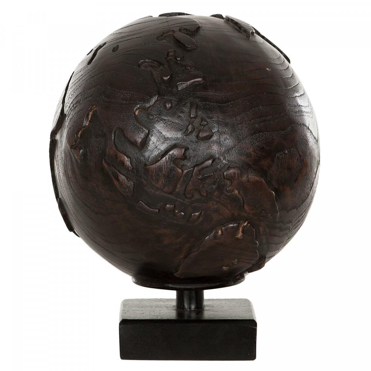 Tämä pallo on veistetty tiikin juuresta. Se on saatavilla mustana ja sen mitat ovat Ø20x23 cm.