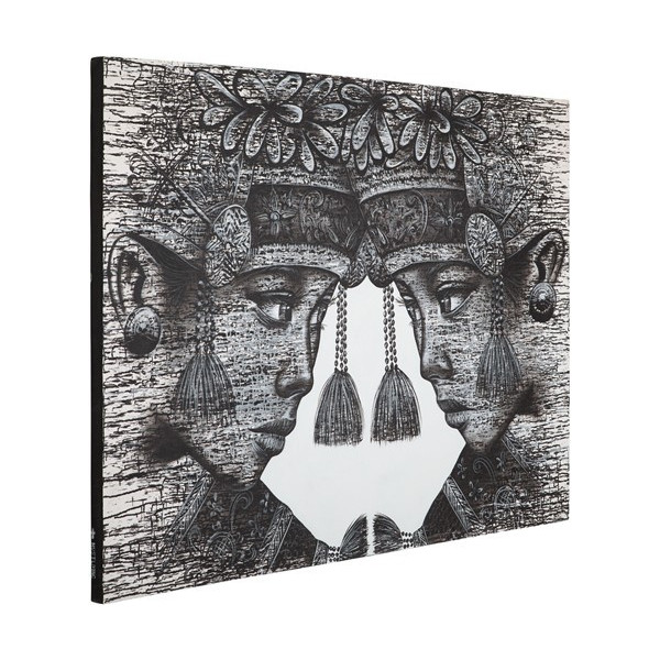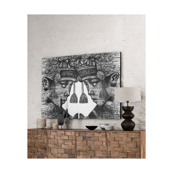 Tämä balilainen kaksoset seinätaide MYT Living ilmaisee hollantilaisen elämäntavan, joka on ylevä ja aito. Tämä kangas kuvaa kaksoset perinteisissä vaatteissa Indonesian Balin saarelta. Se on kooltaan 150x100 cm mustavalkoisissa väreissä, mutta se on tehty maalaamalla kankaalle ”L”. Jos haluat lisätä sisustusta seinään, tämä seinäkoristelu on viettelevää taidetta ripustaa olohuoneeseen.